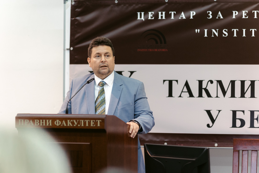 Оснивач и руководилац Центра за реторику и говорништво „Institutio Oratoriaˮ проф. др Никола Мојовић нагласио је значај културе говора, посебно за будуће правнике.